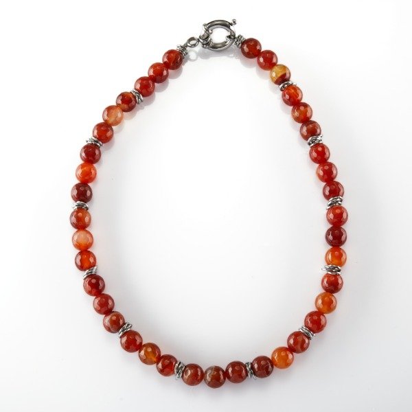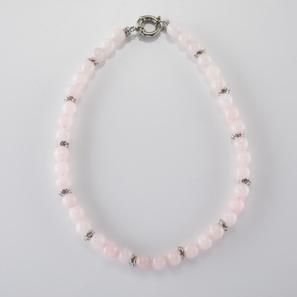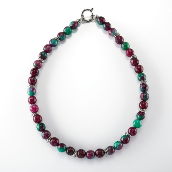 El collar Styx combina la pureza de las piedras naturales con un diseño elegante y atemporal. Confeccionado con cuentas pulidas intercaladas con delicados separadores metálicos, resalta por su estilo sofisticado y versátil.