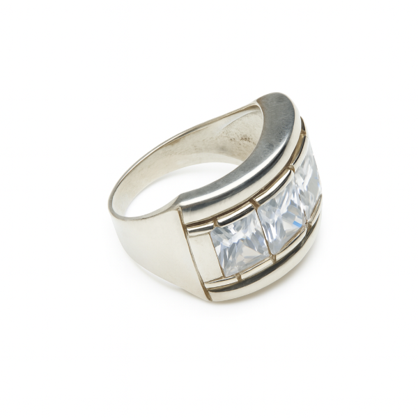 Diseñado en Plata 925, este anillo presenta cinco cristales corte princesa que aportan un brillo elegante y sofisticado. Su diseño ancho lo convierte en una pieza de impacto, perfecta para elevar cualquier look, desde el día a día hasta eventos especiales.