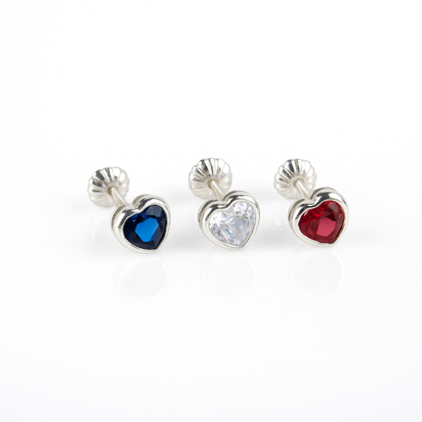 Románticos y sofisticados, nuestros aros en forma de corazón están elaborados en plata 925, con un delicado engarce que realza su brillo natural. Disponibles en tres colores – azul, cristal y rojo intenso – perfectos para combinar con cualquier estilo y ocasión.