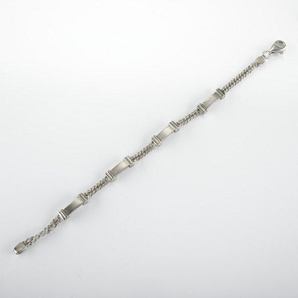 Diseñada con elegancia y firmeza, esta pulsera de Plata 925 combina una cadena trenzada de acabado brillante con placas rectangulares pulidas que aportan un toque distintivo. Su estructura robusta y cierre seguro la convierten en una joya perfecta para uso diario o para complementar looks sofisticados.