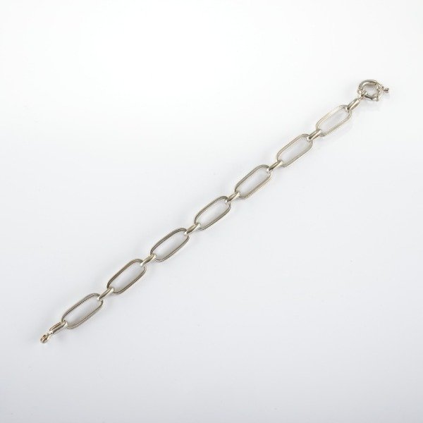 Diseñada para un estilo moderno y atemporal, esta pulsera de Plata 925 cuenta con 7 eslabones rectangulares que aportan un brillo sutil y elegante. Su diseño versátil permite usarla sola o combinarla con otras pulseras, ideal tanto para looks diarios como para ocasiones especiales.