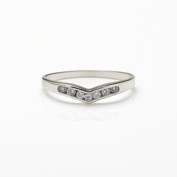 Diseñado con una sutil curvatura en forma de "V", este anillo en plata 925 abraza la elegancia minimalista con un toque de brillo. Los pequeños cristales engarzados aportan destellos delicados que realzan su diseño, ideal para lucir solo o acompañar otras piezas.