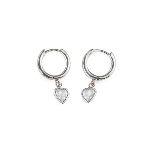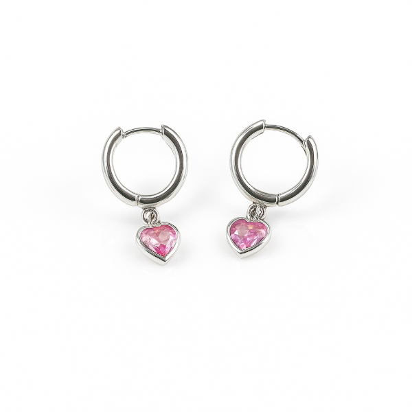 Delicadas argollas de plata 925 con dije de corazón facetado, perfectas para sumar brillo y romanticismo a tu look diario. Disponibles en azul, rosa y cristal, podés elegir el color que mejor refleje tu estilo. Opción ideal para regalar o regalarte.
