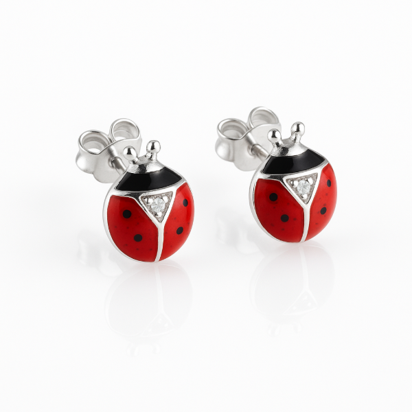 Estos adorables aros con diseño de mariquitas están elaborados en Plata 925 y esmaltados a mano en vibrantes tonos rojo y negro. Su delicado brillo y detalles en relieve transmiten frescura, alegría y un toque de buena suerte, perfectos para iluminar tu look diario o regalar un gesto lleno de dulzura.