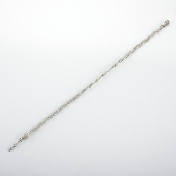Delicada y elegante, esta pulsera de Plata 925 presenta un diseño trenzado que aporta textura y brillo sutil a la pieza. Su estilo minimalista y ajustable la convierte en una joya perfecta para uso diario o para complementar otros accesorios.