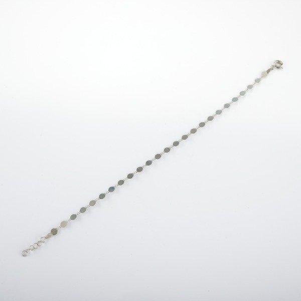 Minimalista y con mucho brillo, esta pulsera de Plata 925 está compuesta por pequeños discos planos unidos entre sí, creando un efecto delicado y elegante. Ideal para usar sola o en combinación con otras pulseras, aportando movimiento y destellos sutiles a tu look.